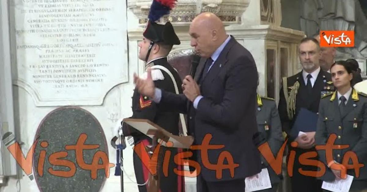 "Qui ancora una volta ostinatamente a ricordare le persone cadute, tra civili e militari nelle missioni di pace. Li ricordiamo perché la ricchezza di uno Stato si fonda sui privati. Non c'è Stato forte senza qualcuno che possa servirlo. E nessuno lo servirebbe se quel servizio non venisse riconosciuto. Noi siamo qui ostinantamente come Stato per ricordare chi quello Stato lo ha servito e lo serve anche a costo della vita" così il Ministro Crosetto, intervenendo alla messa in ricordo dei caduti militari.