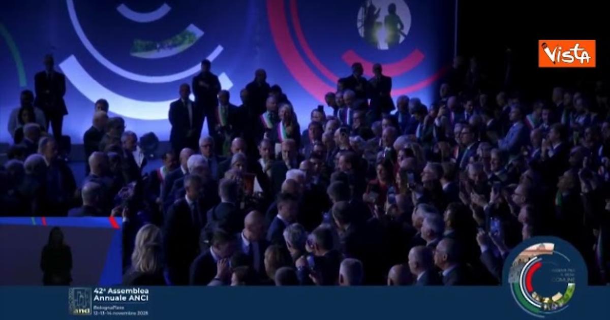 Il Presidente della Repubblica Sergio Mattarella arriva alla 42esima assemblea annuale dell'Anci a Bologna accolto da fragorosi applausi.
