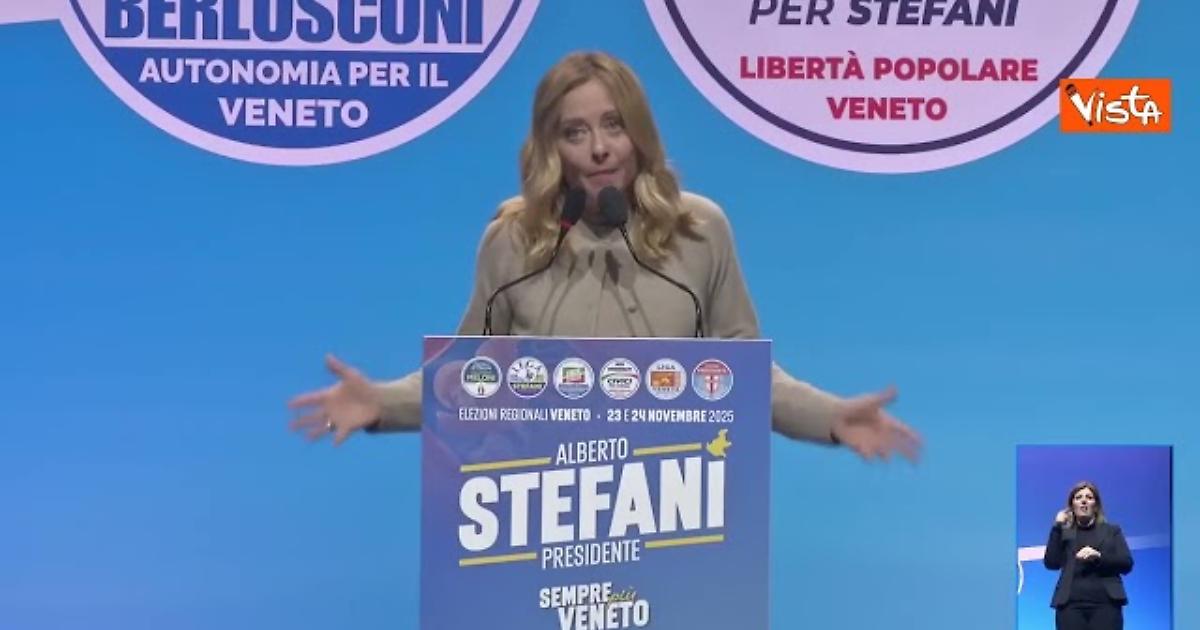 "Parità di genere non è farsi chiamare "falegnama". Parità vuol dire non dover scegliere tra un posto di lavoro e poter mettere al mondo un bambino". Lo ha detto Giorgia Meloni a Padova, al comizio del centrodestra a sostegno di Aberto Stefani.
