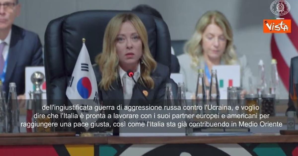 Meloni al G20: Lavorare con partner Usa e Ue per pace giusta in Ucraina