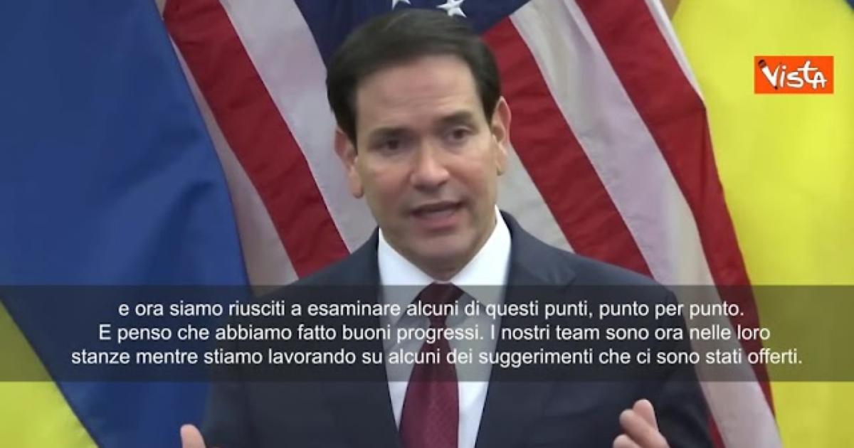 (Agenzia Vista) Ginevra, 23 novembre 2025 "Le riunioni di oggi sono state le più produttive e significative finora in tutto questo processo, da quando siamo stati coinvolti fin dall'inizioAbbiamo un ottimo prodotto di lavoro, già costruito sulla base dei contributi di tutte le parti coinvolte, e ora siamo riusciti a esaminare alcuni di questi punti, punto per punto. E penso che abbiamo fatto buoni progressi. I nostri team sono ora nelle loro stanze mentre stiamo lavorando su alcuni dei suggerimenti che ci sono stati offerti". Lo ha detto il segretario di Stato Usa, Marco Rubio parlando a Ginevra. X Fonte: Agenzia Vista / Alexander Jakhnagiev