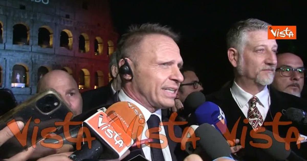 (Agenzia Vista) Roma, 10 dicembre 2025 "Un risultato che rafforzare il nostro sistema. E' motivo di orgoglio per tutti gli italiani, la cucina ci unisce. Tante cose ci dividono, ma oggi il Parlamento ha accolto con un applauso corale un risultato che abbiamo costruito insieme al Ministero della Cultura, ma che ha visto partecipe tutto il sistema Italia" così il Ministro Lollobrigida, a margine dell'inaugurazione dell'installazione luminosa al Colosseo per celebrare la cucina italiana patrimonio dell'Unesco. Fonte: Agenzia Vista / Alexander Jakhnagiev