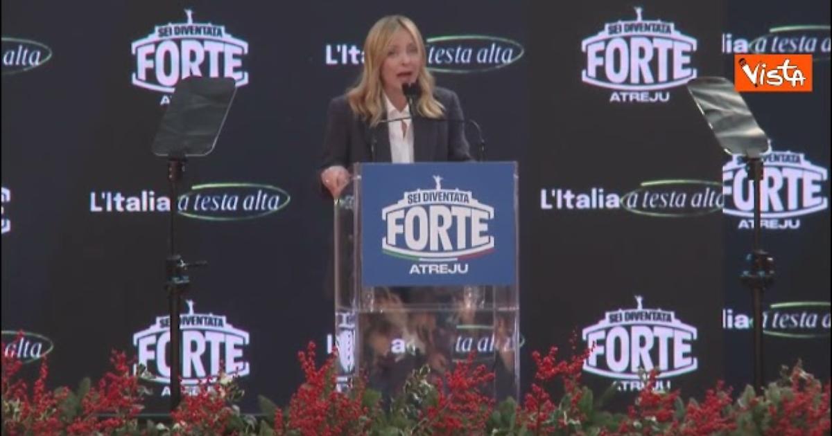 "Mando un messaggio a tutti quelli che continuano a dire la Meloni sola: signori guardatevi intorno. Un grazie profondo va ad Antonio e Matteo, possiamo contare su una visione condivisa, noi non siamo un incidente della storia, un accordo di convenienza, una somma di persone, ma un gruppo che viene da 30 anni di battaglie comuni", così Meloni ad Atreju.