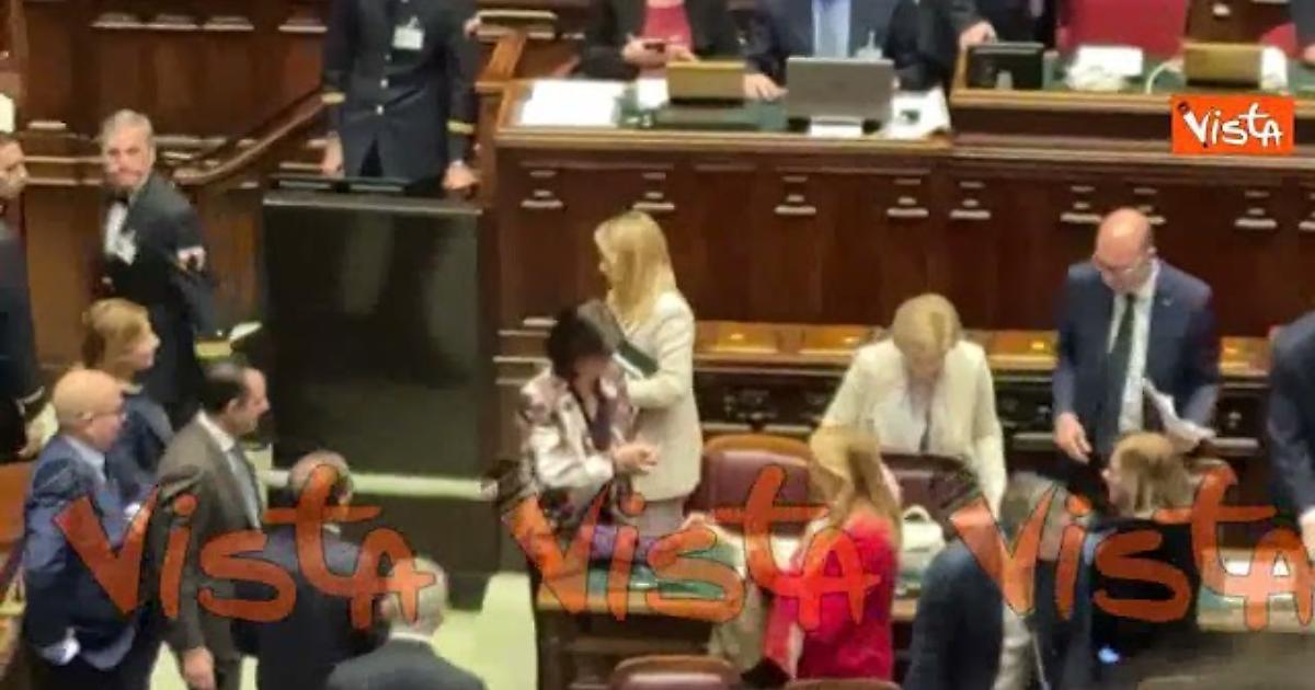 Meloni lascia la Camera al termine delle comunicazioni in Aula sul Consiglio Ue