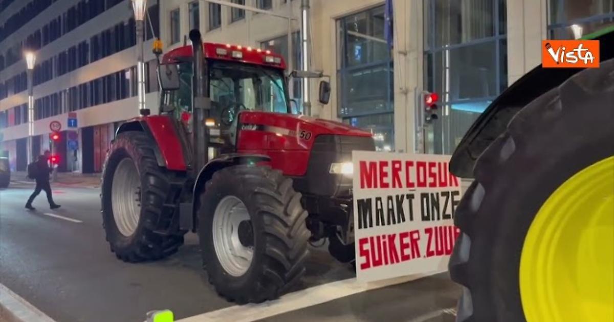 Gli agricoltori protestano con i trattori a Bruxelles al Consiglio Ue contro Mercosur e nuova Pac