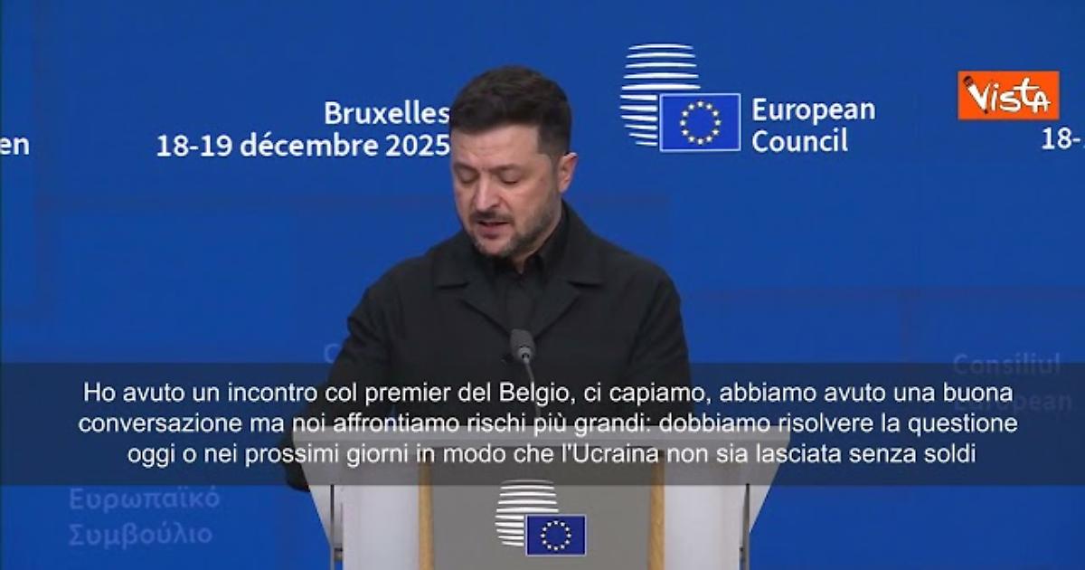 (Agenzia Vista) Bruxelles, 18 dicembre 2025 "Ho avuto un incontro col premier del Belgio, ci capiamo, abbiamo avuto una buona conversazione ma noi affrontiamo rischi più grandi: dobbiamo risolvere la questione oggi o nei prossimi giorni in modo che l'Ucraina non sia lasciata senza soldi". Lo ha detto il Presidente ucraino Volodymyr Zelensky in conferenza stampa a Bruxelles. Ebs Fonte: Agenzia Vista / Alexander Jakhnagiev