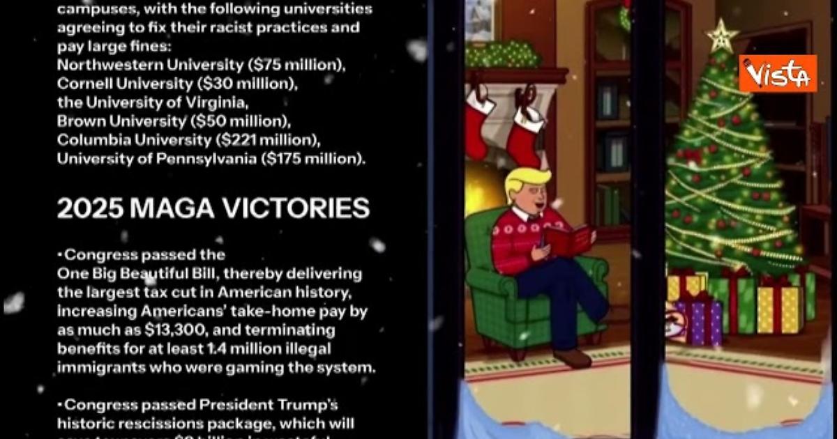 Il video augurale per le festività natalizie della casa Bianca è strutturato come i trend di YouTube, con musica lo-fi in sottofondo, a tema natalizio, e un'immagine sempre uguale di Trump cartoon che legge un libro sotto l'Albero di Natale alla casa Bianca, con un maglione rosso. A fianco a lui scorrono i dati degli obiettivi raggiunti dai "Maga" nel 2025.