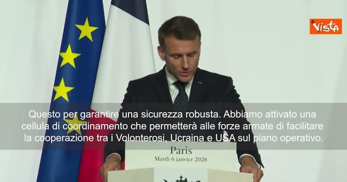 “Oggi abbiamo compiuto progressi notevoli. Questa è la ‘Dichiarazione di Parigi delle garanzie di sicurezza per una pace duratura in Ucraina’. La dichiarazione della Coalizione dei Volenterosi va a riconoscere per la prima volta una convergenza operazionale tra i 35 Paesi che compongono la Coalizione dei Volenterosi, Ucraina e Stati Uniti. Per garantire una sicurezza robusta. Abbiamo attivato una cellula di coordinamento che permetterà a tutte le forze armate competenti di facilitare la cooperazione tra la Coalizione dei Volenterosi, Ucraina e Usa a livello operativo”. Lo ha detto il Presidente della Francia Emmanuel Macron nella conferenza stampa tenutasi al Palazzo dell’Eliseo.
