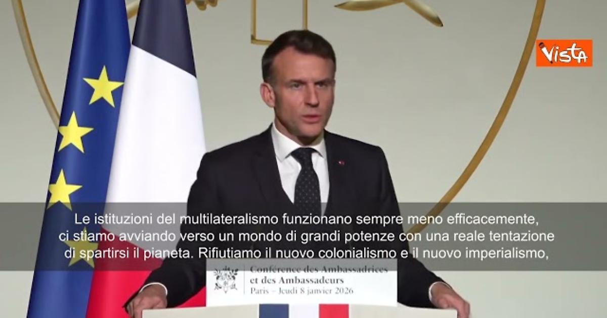 Gli Stati Uniti di Donald Trump si stanno progressivamente allontanando da alcuni alleati e si svincolano dalle regole internazionali, si tratta di una forma di aggressione neo-coloniale sempre più presente nelle relazioni diplomatiche. Le istituzioni del multilateralismo funzionano sempre meno efficacemente, ci stiamo avviando verso un mondo di grandi potenze con una reale tentazione di spartirsi il pianeta. Rifiutiamo il nuovo colonialismo e il nuovo imperialismo, ma rifiutiamo anche la vassallizzazione e il disfattismo. 'Ciò che siamo riusciti a fare per la Francia e in Europa va nella direzione giusta. Più autonomia strategica, meno dipendenza rispetto agli Stati Uniti come rispetto alla Cina", lo ha detto il Presidente Francese Macron.
