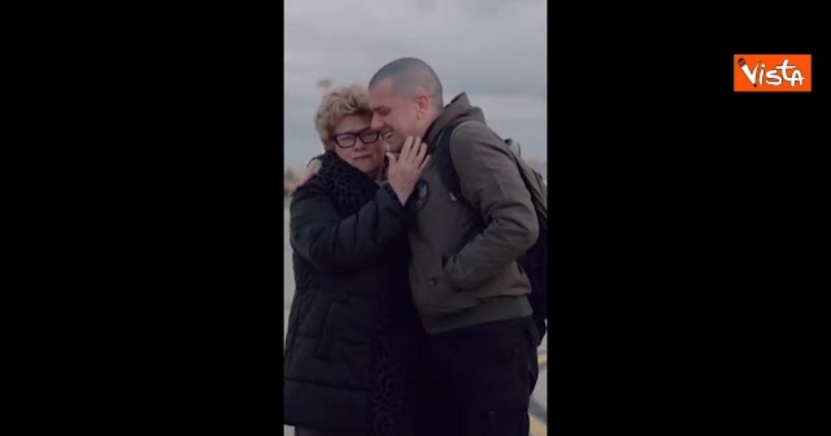 Trentini abbraccia la mamma, Burlò i figli. Il rientro in Italia dopo la liberazione dal Venezuela