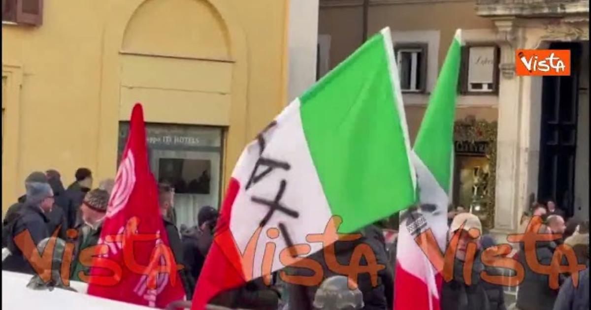 (Agenzia Vista) Roma, 13 gennaio 2026 Fumogeni e bombe carta lanciate dai manifestanti nei pressi di Montecitorio, durante il corteo dei tassisti che aderiscono allo sciopero contro Uber e le piattaforme internazionali di trasporto. Fonte: Agenzia Vista / Alexander Jakhnagiev
