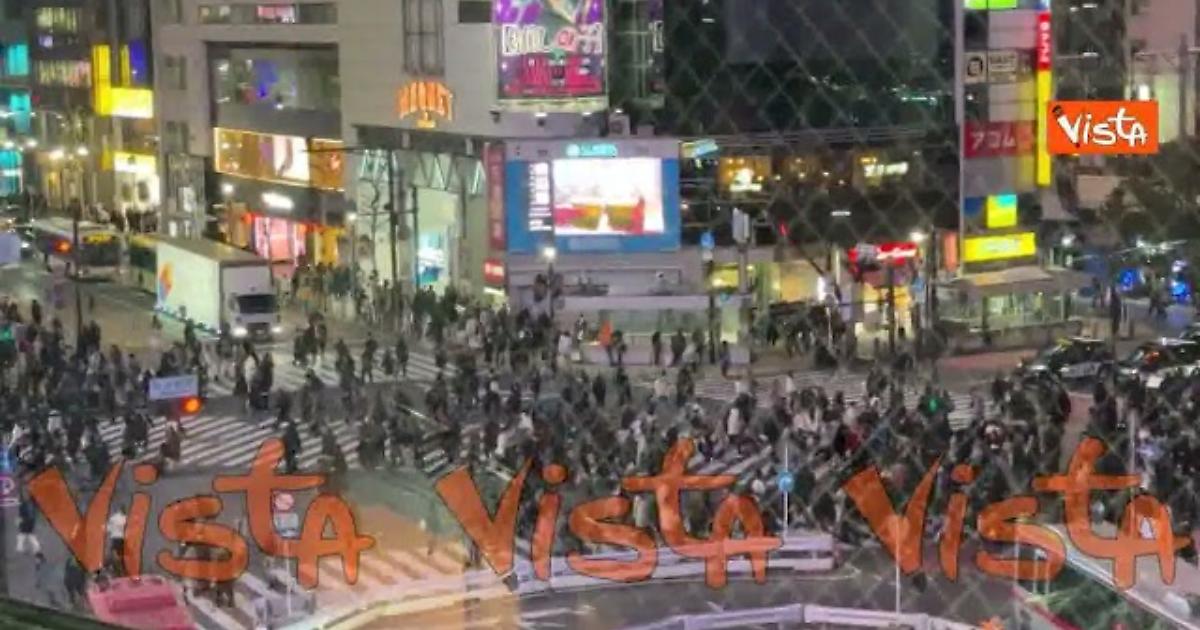 Le immagini viste dall'alto dell'incrocio più trafficato al mondo, il celebre Shibuya, a Tokyo.