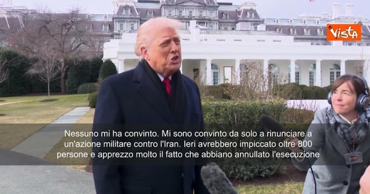 (Agenzia Vista) Usa, 17 gennaio 2026 "Nessuno mi ha convinto. Mi sono convinto da solo a rinunciare a un'azione militare contro l'Iran. Ieri avrebbero impiccato oltre 800 persone e apprezzo molto il fatto che abbiano annullato l'esecuzione" lo ha detto Donald Trump parlando con i cronisti alla Casa Bianca. WhiteHuose Fonte: Agenzia Vista / Alexander Jakhnagiev