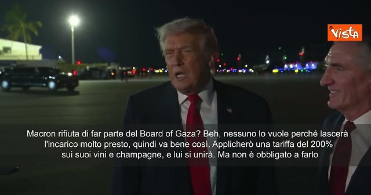Board of Gaza, Trump: Macron? Nessuno lo vuole. Applicherò dazi 200% su suoi vini e champagne