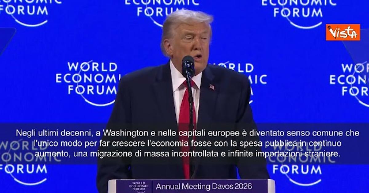 (Agenzia Vista) Roma, 22 gennaio 2026 “Alcuni posti in Europa francamente non sono neanche riconoscibili, non voglio insultare nessuno, amo l’Europa, ma non sta andando nella giusta direzioneNegli ultimi decenni, a Washington e nelle capitali europee è diventato senso comune che l'unico modo per far crescere l'economia fosse con la spesa pubblica in continuo aumento, una migrazione di massa incontrollata e infinite importazioni straniere. Il consenso era che i cosiddetti lavori sporchi e le industrie pesanti dovessero essere inviati altrove, che l'energia accessibile dovesse essere sostituita dalla "nuova truffa verde"e che i Paesi potessero essere sostenuti importando nuove e interamente diverse popolazioni da terre lontane”. Lo ha detto Trump a Davos. Wef Fonte: Agenzia Vista / Alexander Jakhnagiev